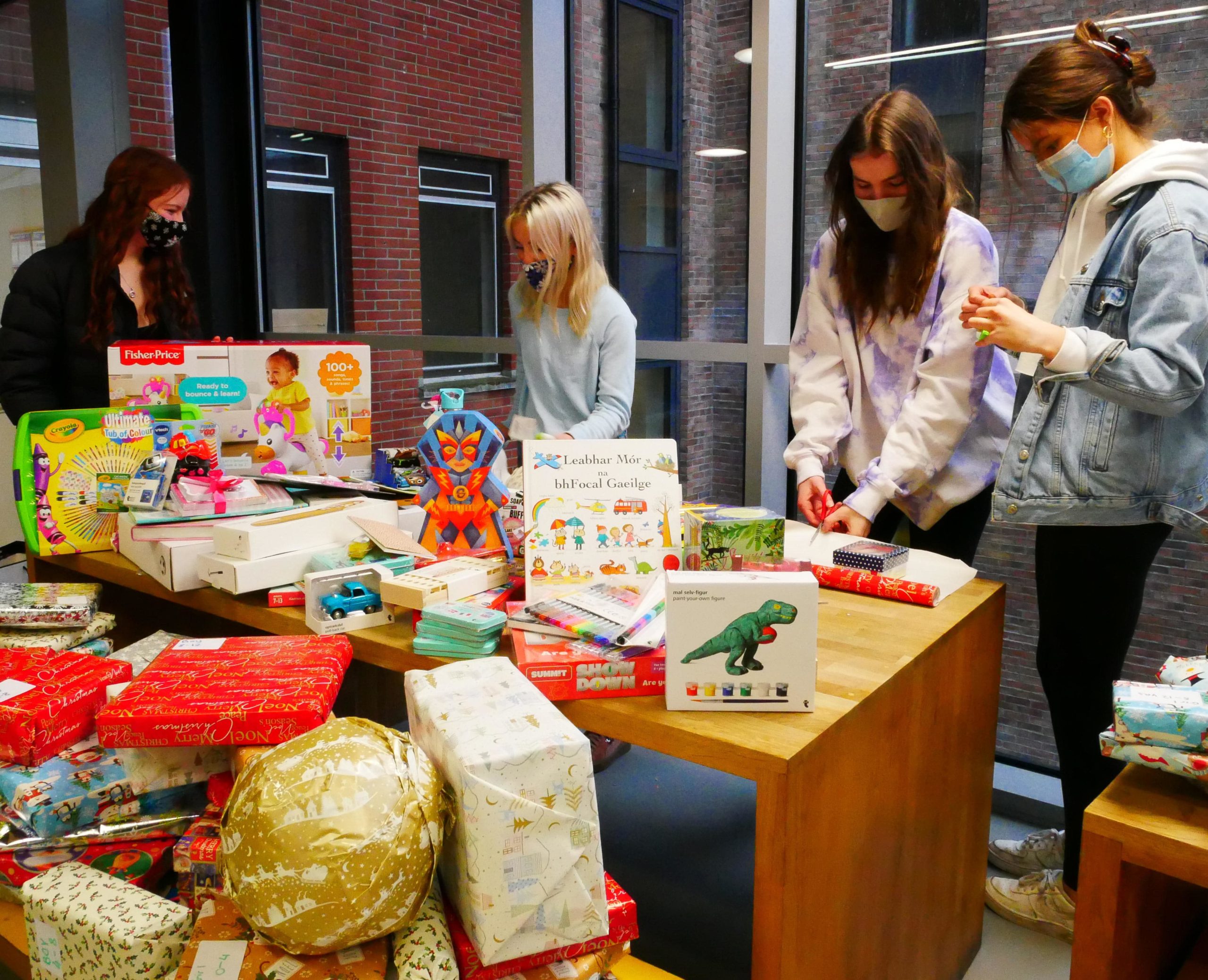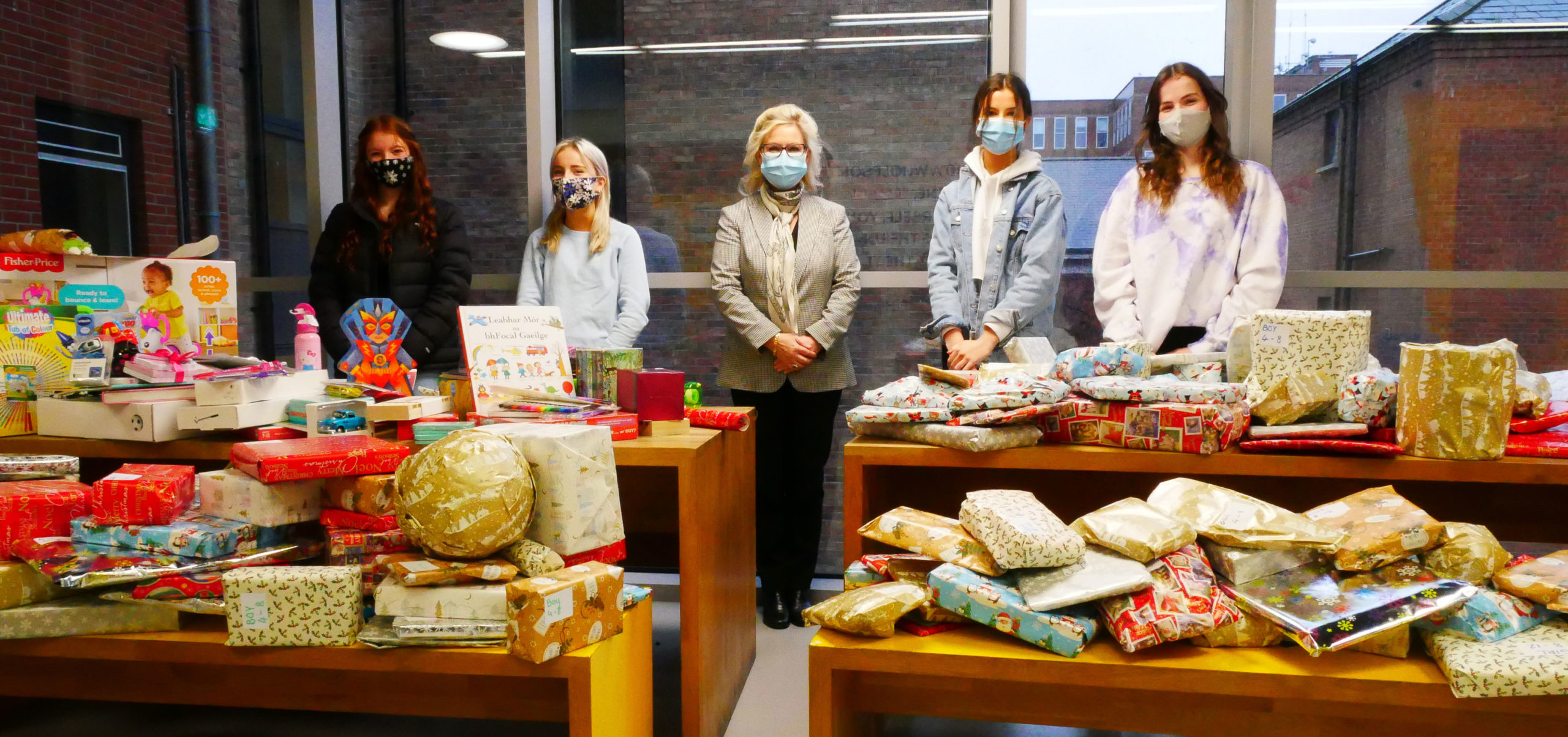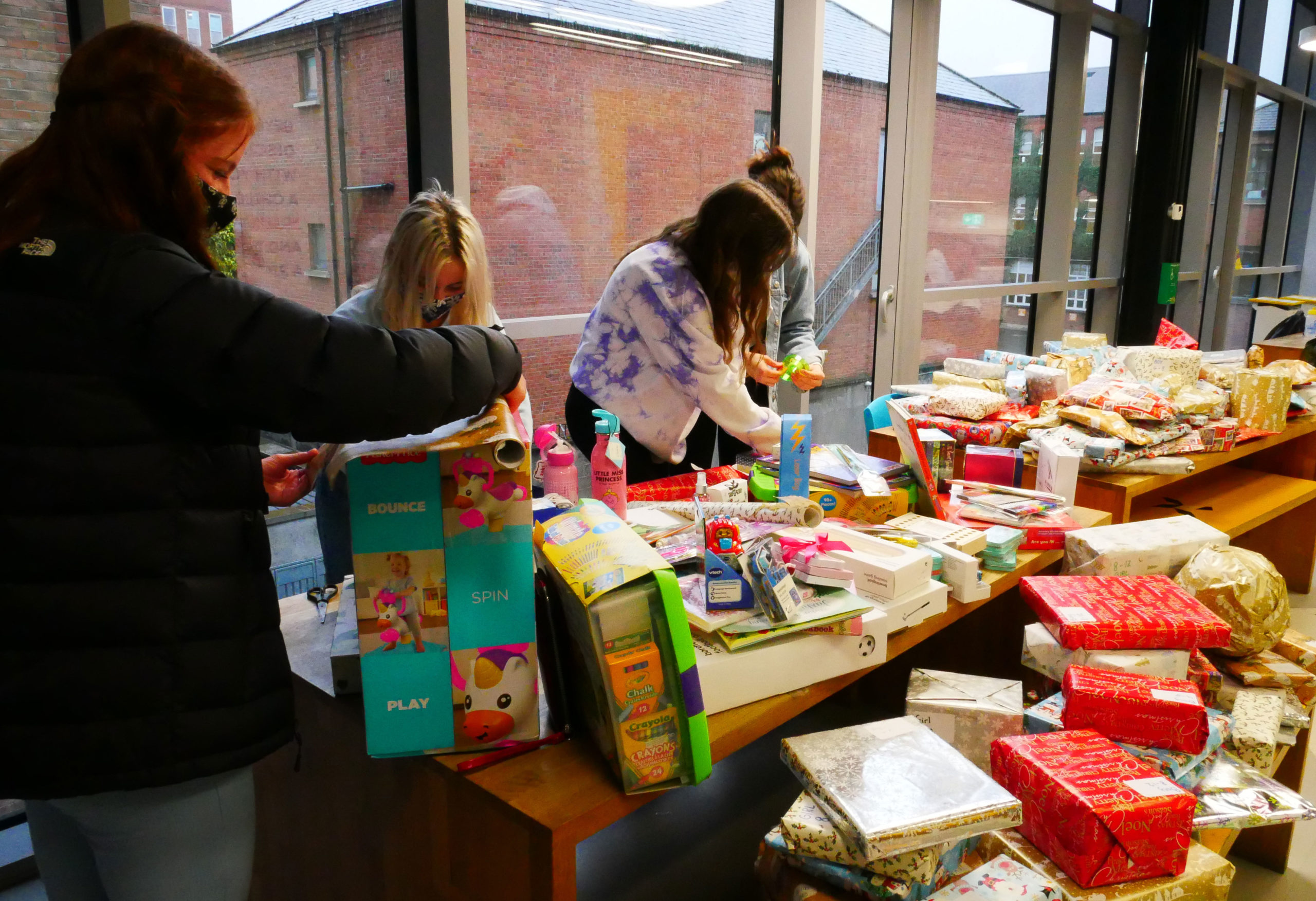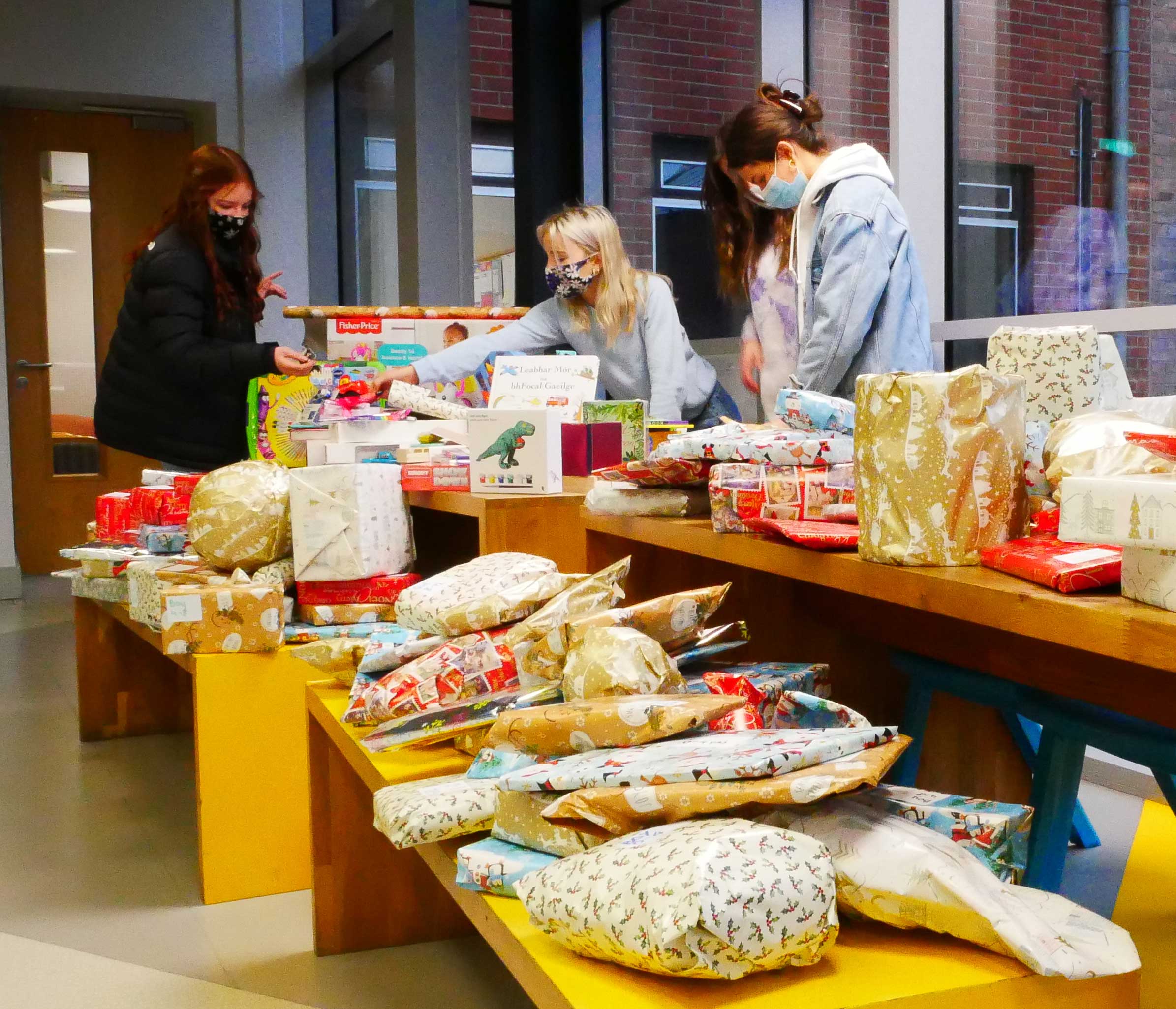 Last week, Sophie McCarthy, a 4th Year student, along with some of her fellow 4th Year students organised to gather and wrap what can only be described as a mountain of donated children’s Christmas gifts.